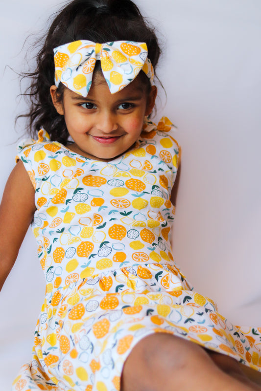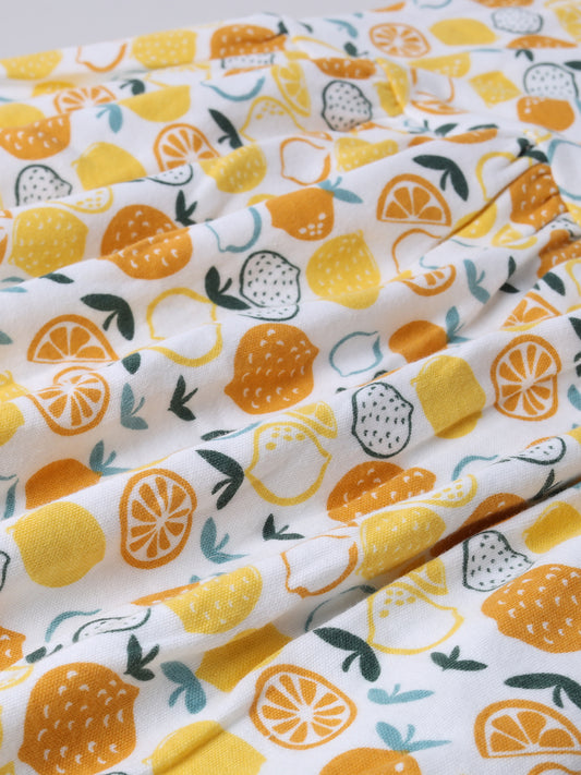 Lemon Print Pure Cotton Girls Half Sleeve Frock