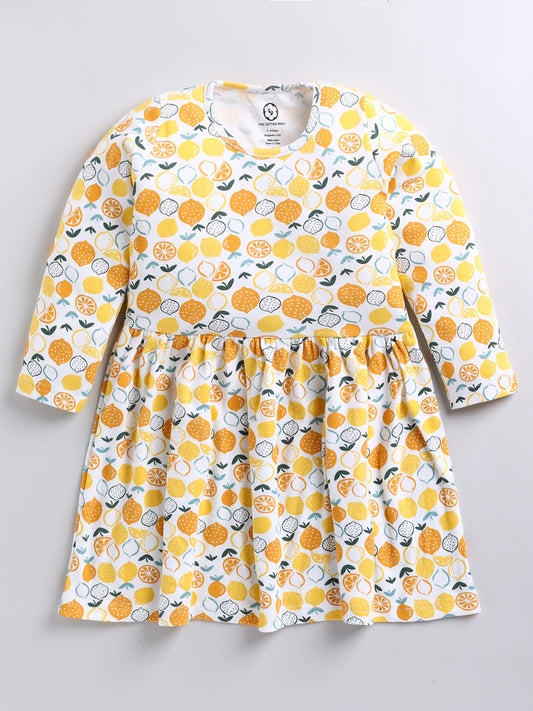 Lemon Print Pure Cotton Girls Full Sleeve Frock