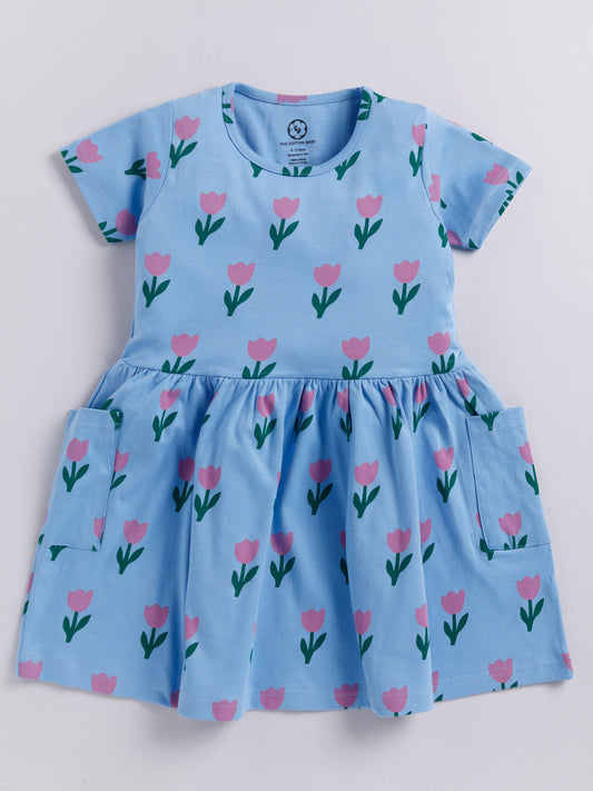 100% Pure Cotton Nature Print Half Sleeve Frock