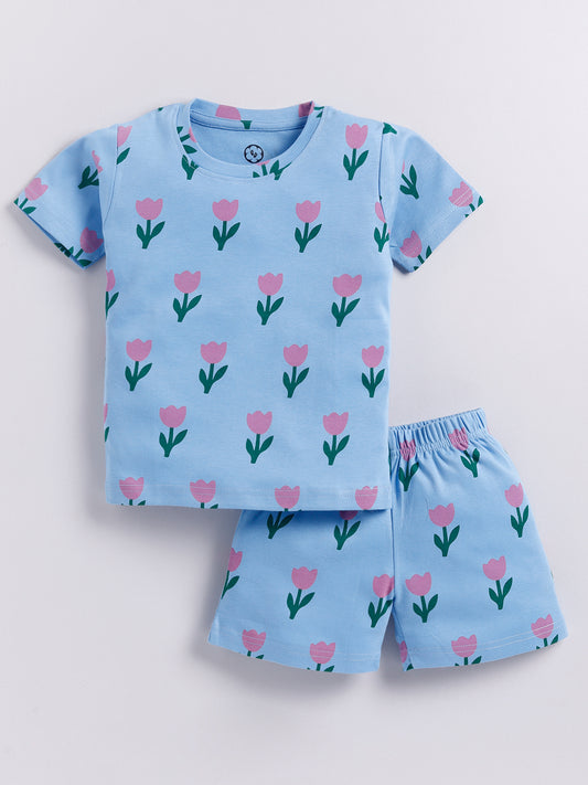 100% Cotton Half Sleeve Tshirt & Short set- Nature Print